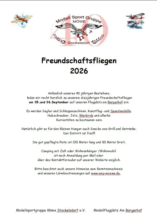 Hier findet Ihr unsere Einladung zu unserem alljählichen Freundschaftsfliegen